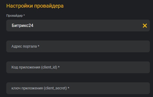 - Код приложения - client_id из настроенной интеграции на своём портале Битрикс24