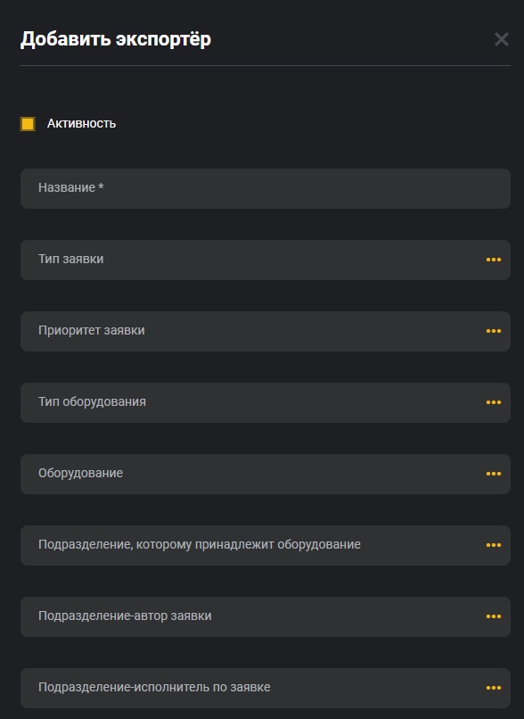 - Активность - позволяет включать/выключать экспортёр по необходимости