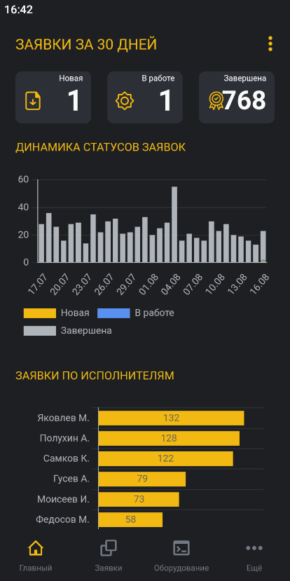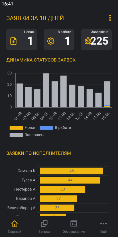 - Динамика статусов заявок