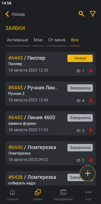 - Нажмите кнопку + в списке заявок.