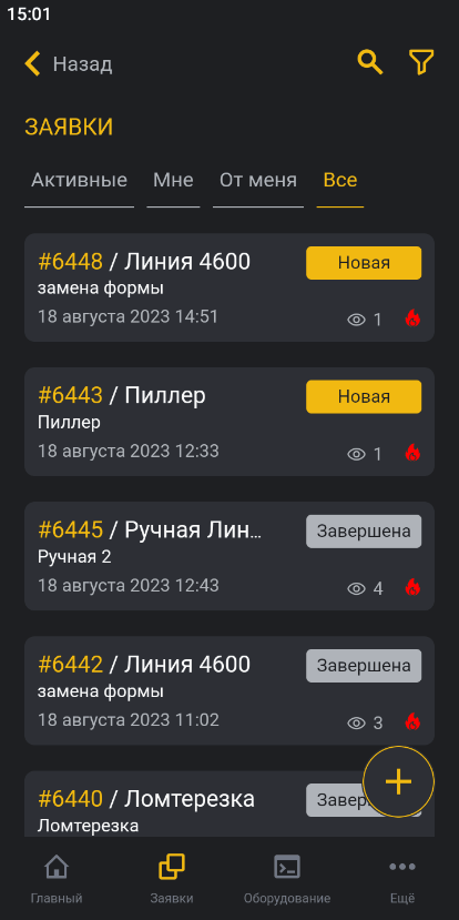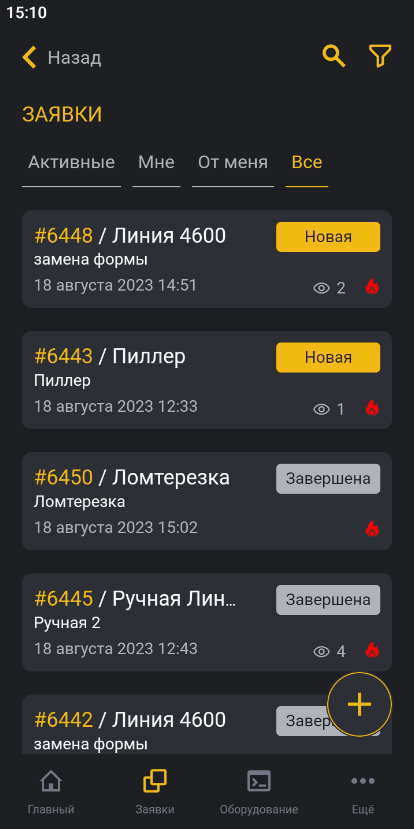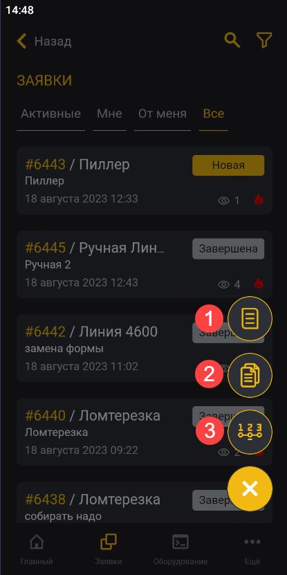 Созданные заявки отобразятся в общем списке заявок.
