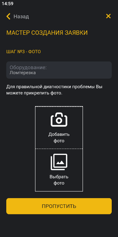 - На шаге 3 прикрепите фото неисправности, выбрав его из галереи смартфона или сделайте фото (можно прикрепить несколько фотографий или пропустить этот шаг).