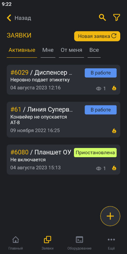 Если во время работы со списком заявок на ваше подразделение поступила новая заявка, в списке появится специальная кнопка, позволяющая загрузить все новые заявки.
